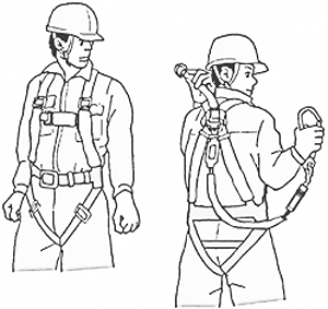 高所でフルハーネス型安全帯を着装しながら溶接作
